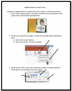 What will you need for this? Well, it will really depends on how you want to set it up. Basically, you will need a powerpoint book, adapted mouse, and a switch.