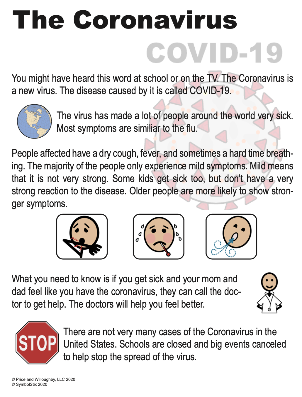 This is a two sheet informational document that can be used by parents or teachers to talk to their students about the Cornoavirus.